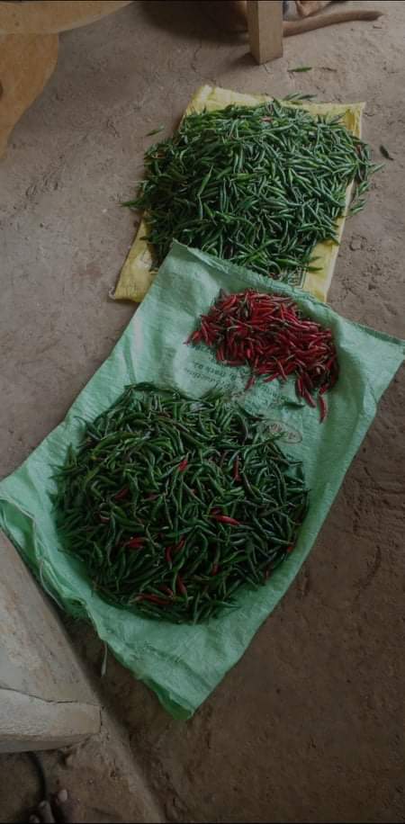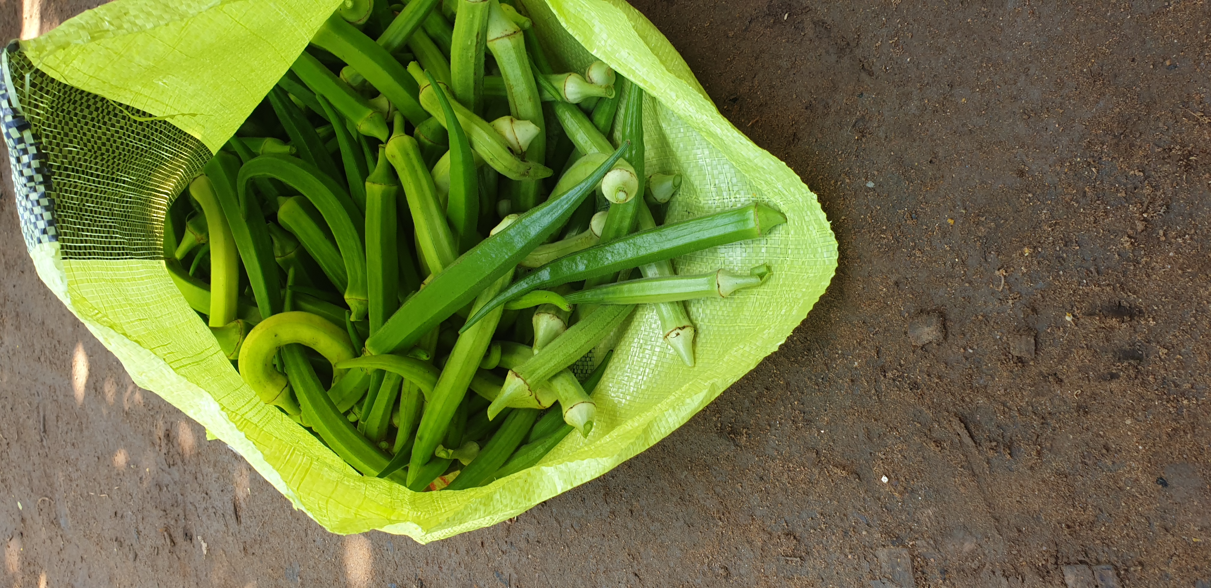 Diverse grøntsager: Green Beens, Long Beens, Okra, Peanuts, Chilie